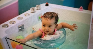 Com uma equipa de profissionais altamente qualificados em cuidados infantis e bem-estar aquático, criamos um ambiente seguro, acolhedor e estimulante onde cada bebé é tratado de forma individualizada. Acreditamos que a água é um elemento natural que promove o relaxamento, fortalece o vínculo entre pais e filhos e estimula o desenvolvimento motor e sensorial.